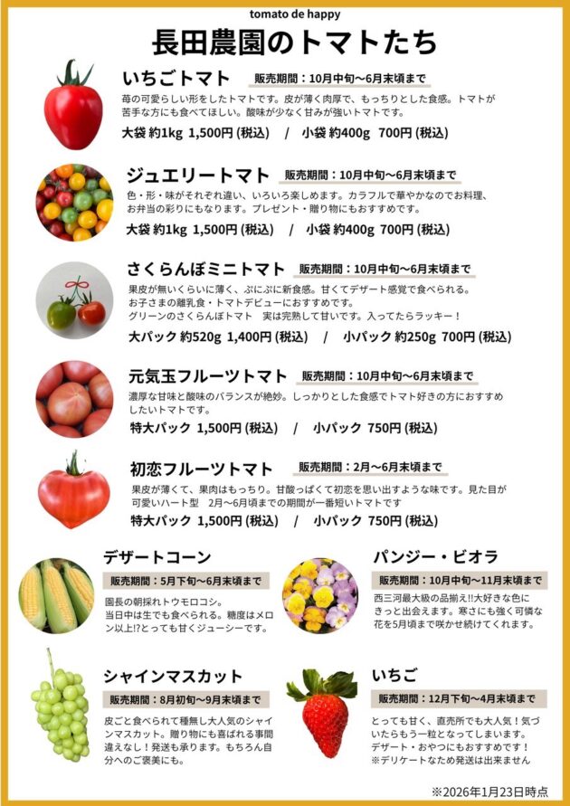 長田農園のトマトやその他の商品は、